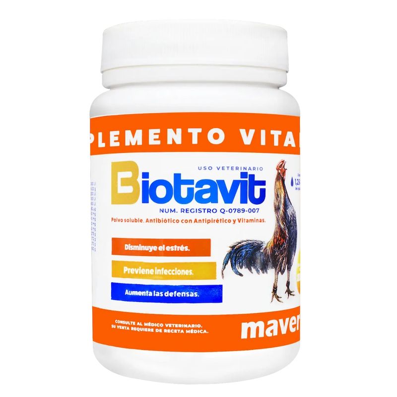 BIOTAVIT es un polvo soluble oral, se recomienda como fuente suplementaria de vitaminas antes y durante las prácticas de manejo de los animales Contrarresta los efectos desfavorables ocasionados por la tensión, cambios bruscos de temperatura, alimentación y reacciones posteriores a la vacunación. Estimula el crecimiento y rendimiento de todas las especies animales. Por la concentración de vitaminas, antibióticos y un antipirético que BIOTAVIT contiene, se recomienda su uso como profiláctico, así como para el mejor aprovechamiento de los alimentos.