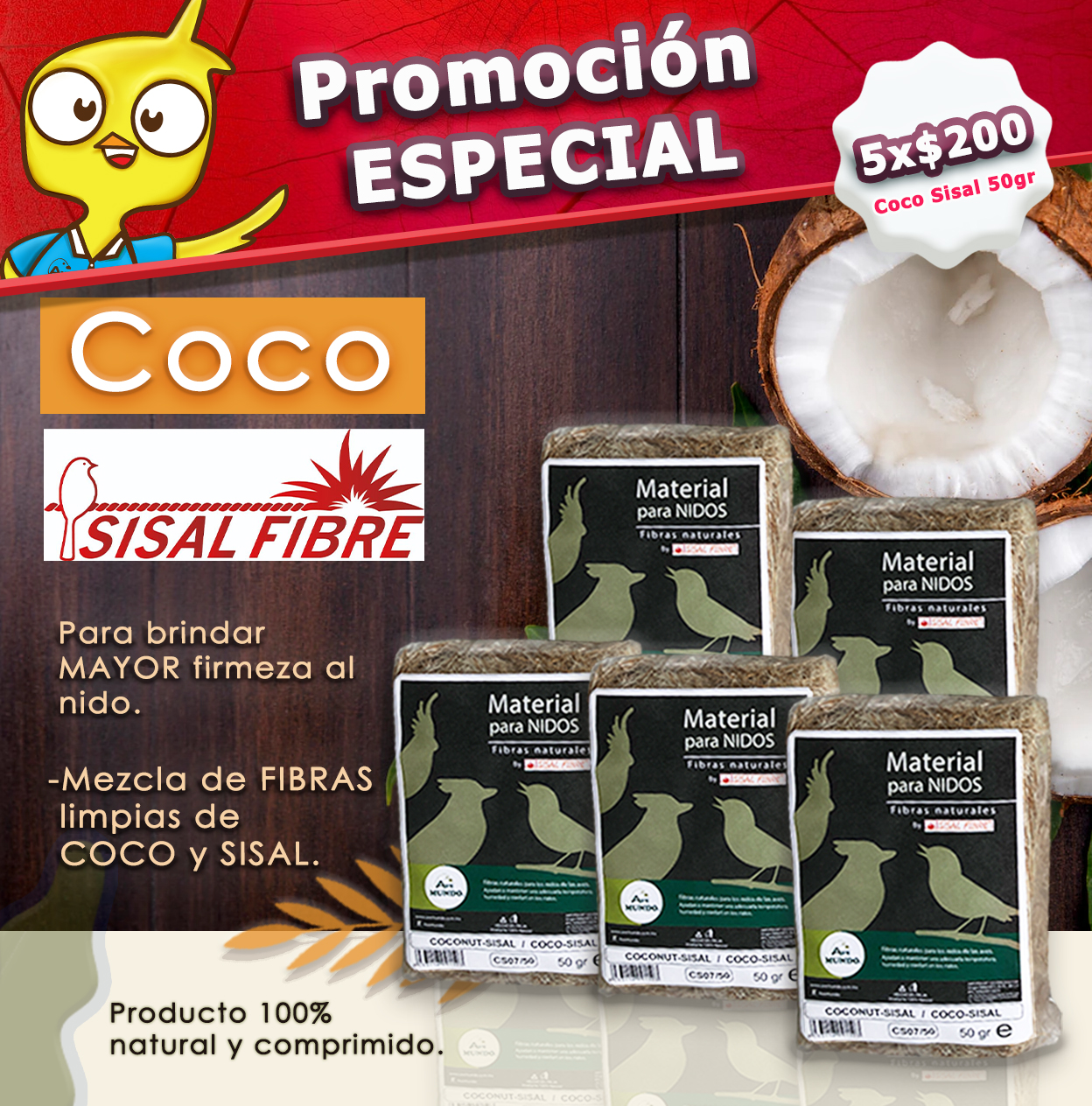Fibra natural especial para canarios, finches y periquitos australianos.